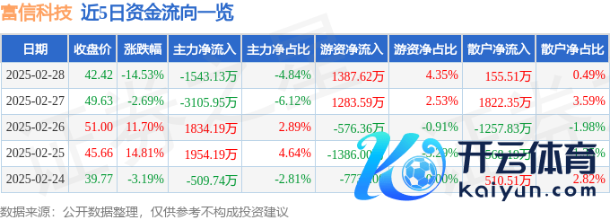 本站讯息,放肆2025年2月28日收盘,富信科技(688662)报收于42.42元,着落14.53%,换手率8.23%,成交量7.26万手,成交额3.19亿元。