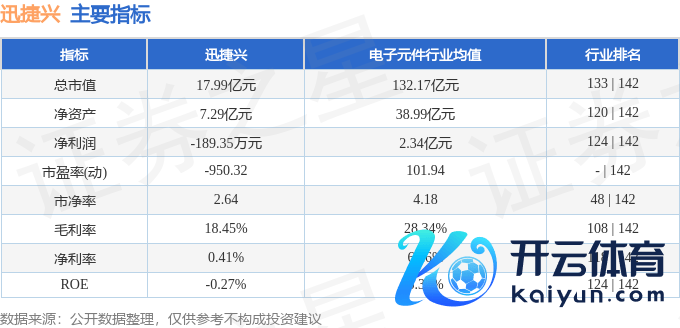 迅捷兴2024年三季报袒露,公司主营收入3.47亿元,同比上升2.87%;归母净利润142.2万元,同比下降86.39%;扣非净利润-484.33万元,同比下降209.72%;其中2024年第三季度,公司单季度主营收入1.18亿元,同比下降1.04%;单季度归母净利润-255.94万元,同比下降262.12%;单季度扣非净利润-549.15万元,同比下降2444.74%;欠债率37.55%,投资收益33.71万元,财务用度314.28万元,毛利率18.45%。迅捷兴(688655)主商业务:印制电路板的研发、分娩和销售。