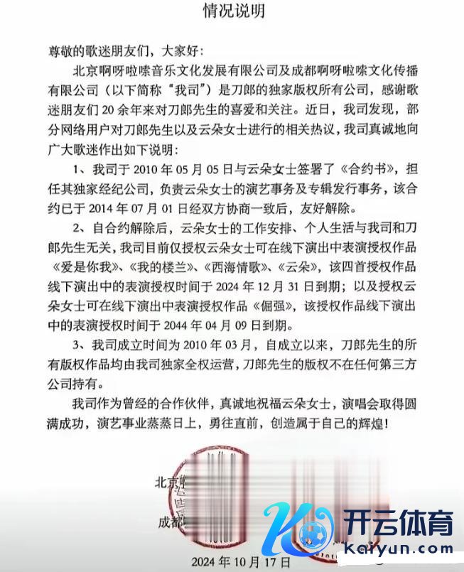 即便分开,刀郎也免费授权云朵多首作品的饰演权,给互相留足了体面。