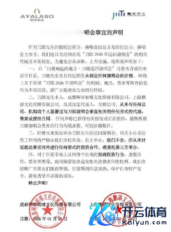 1月26日,刀郎方发布声明,明确辟谣了刀郎2026年的演唱会的讯息。