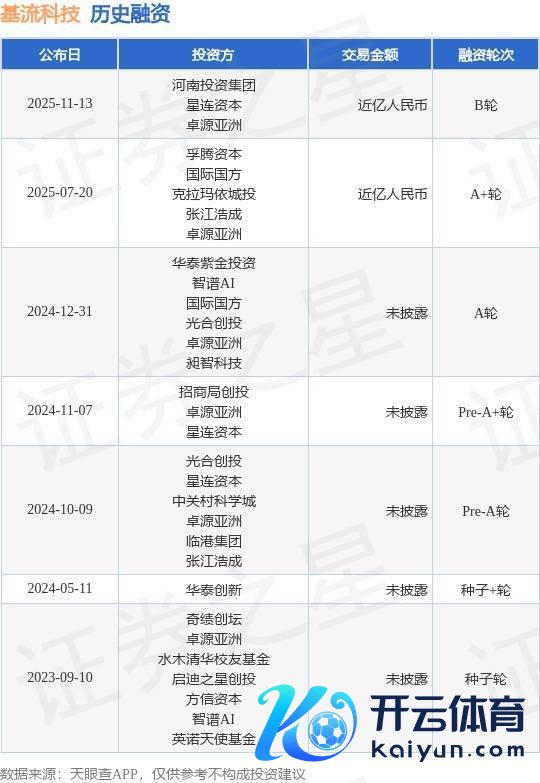 证券之星音书,凭据天眼查APP于11月13日公布的信息整理,北京基流科技有限公司B轮融资,融资额近亿东说念主民币,参与投资的机构包括河南投资集团,星连本钱九游体育app(中国)官方网站,卓源亚洲。