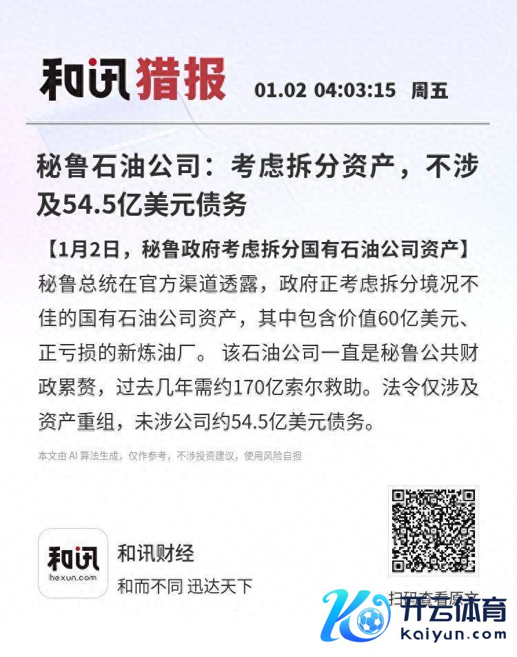 【1月2日,秘鲁政府有计划拆分国有石油公司金钱】秘鲁总统在官方渠谈深入,政府正有计划拆分境况欠安的国有石油公司金钱,其中包含价值60亿好意思元、正耗费的新真金不怕火油厂。该石油公司一直是秘鲁群众财政株连,往日几年需约170亿索尔挽回。功令仅波及金钱重组,未涉公司约54.5亿好意思元债务。